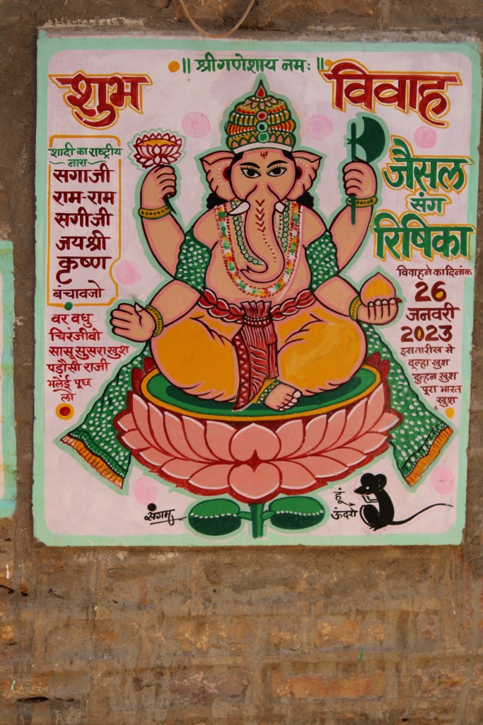 We noticed all over town these images on the buildings with dates. They were wedding invitations inviting the entire city to the wedding! We learned from our tour guides that it was normal for a wedding to include 5 days of festivities with up to 2,000 people! We walked over to the Jain Temple within the Jaisalmer Fort. It had intricate carvings of the yellow testament which shows the incredible craftsmanship during those times. It had a spiritual and peaceful atmosphere